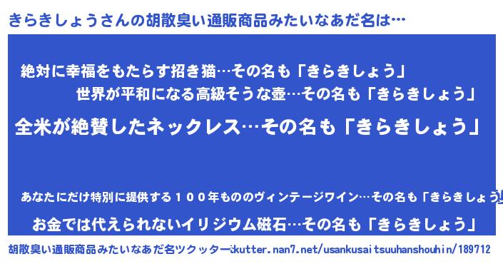 | 意味不明あだ名 | 『とにかく怪しいきらきしょう』 |
