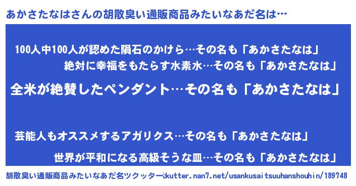 | 男性向けラノベタイトル風あだ名 | 『あかさたなはに滅ぼされるだけの簡単なお仕事です』 |