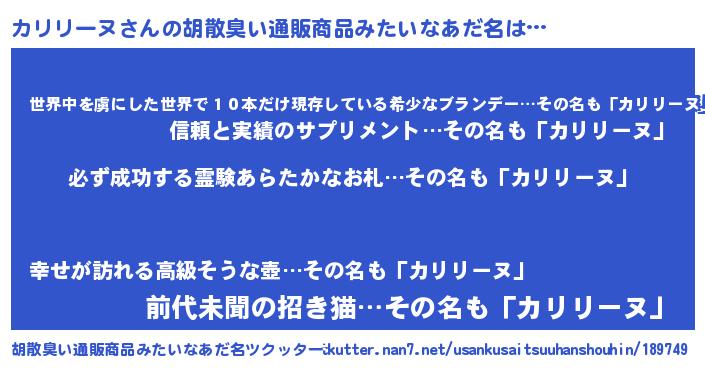| 男性向けラノベタイトル風あだ名 | 『カリリーヌの憂鬱』 |