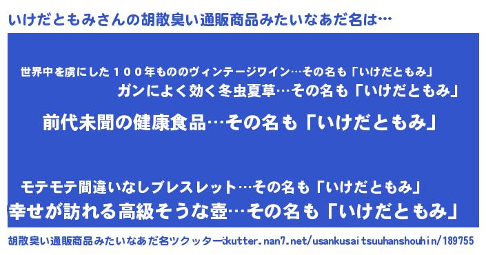 | ヘコむあだ名 | 『いけだともみ(苦笑)』『なまこ酢』 |