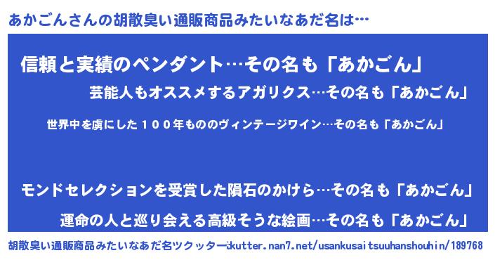 | 意味不明あだ名 | 『住所不定無職あかごん(2歳)』 |