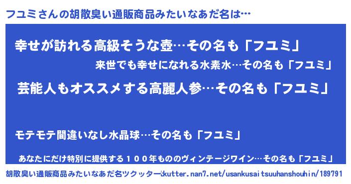 | 意味不明あだ名 | 『自称フユミ』『フユミフォーエバー』 |