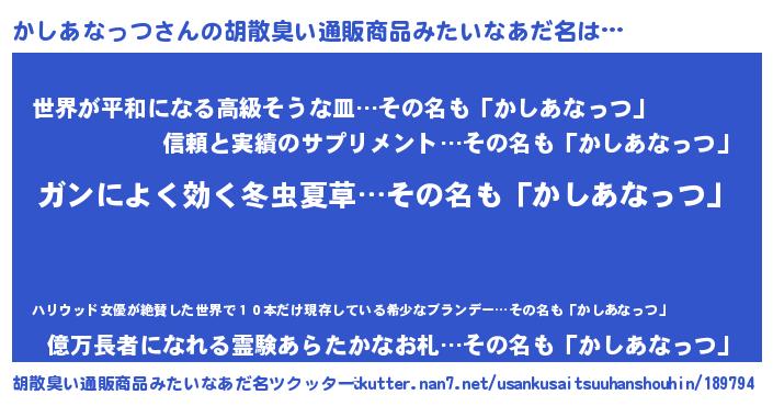| 女子向けラノベタイトル風あだ名 | 『かしあなっつアンティーク』 |