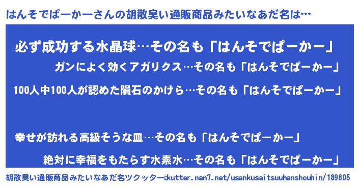 | ヘコむあだ名 | 『はんっふぃ~』『はんそでぱーかー(笑)』 |