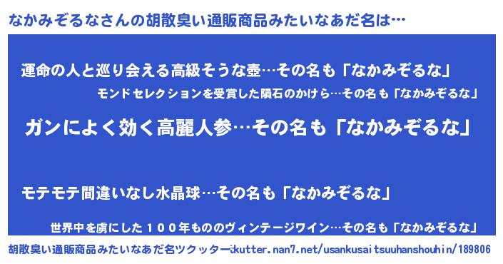 | 意味不明あだ名 | 『自称なかみぞるな』 |