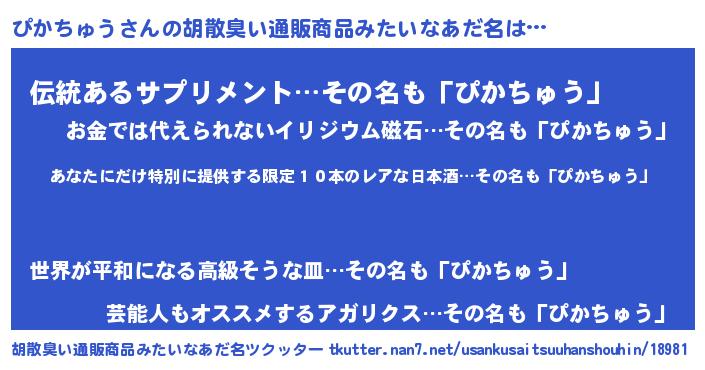 | 意味不明あだ名 | 『住所不定無職ぴかちゅう(59歳)』 |