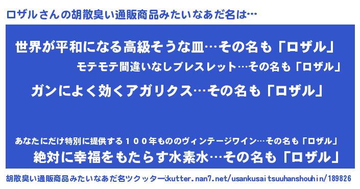 | 意味不明あだ名 | 『自称ロザル』『ロザルフォーエバー』 |