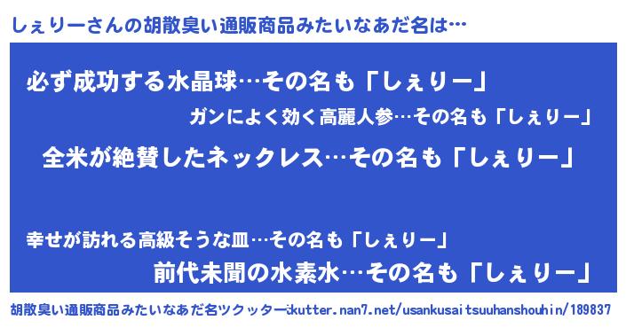 | 欧米人風あだ名 | 『しぇりー・ステッグマイヤー』 |