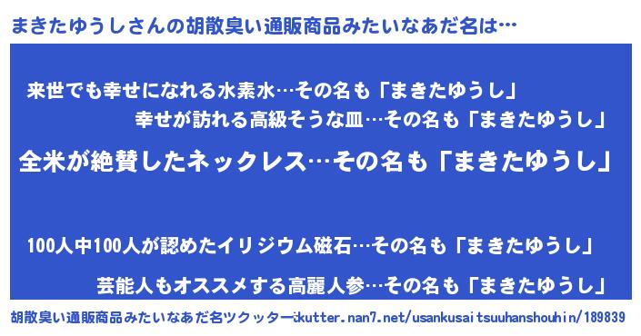 | 意味不明あだ名 | 『とにかく怪しいまきたゆうし』 |