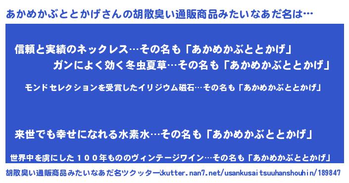 | ヒーロー風カッコイイあだ名 | 『慈愛の使者あかめかぶととかげ』 |