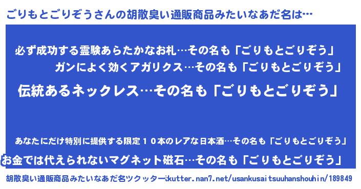 | 意味不明あだ名 | 『とにかく怪しいごりもとごりぞう』 |