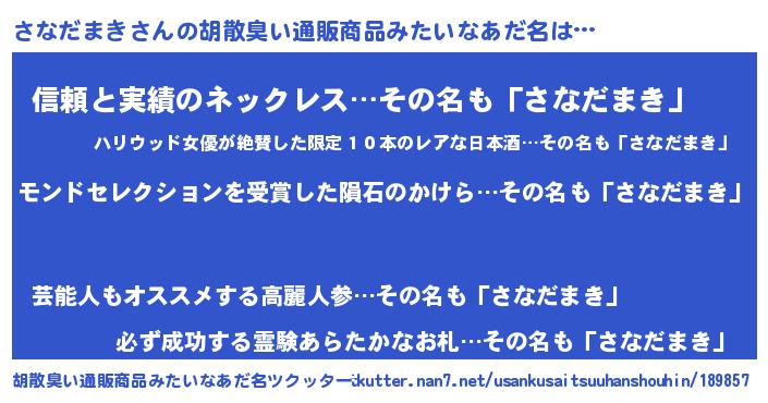 | ヒーロー風カッコイイあだ名 | 『天空の使者さなだまき』『魔戒騎士サナ』 |
