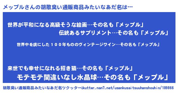 | 意味不明あだ名 | 『住所不定無職メップル(1歳)』 |