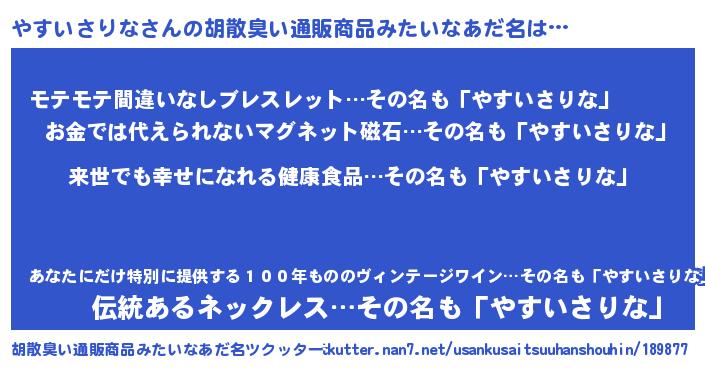 | 意味不明あだ名 | 『永久保存やすいさりな』 |