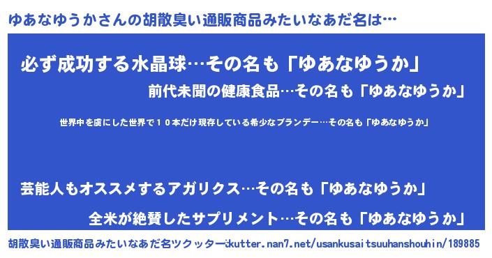| 意味不明あだ名 | 『住所不定無職ゆあなゆうか(86歳)』 |