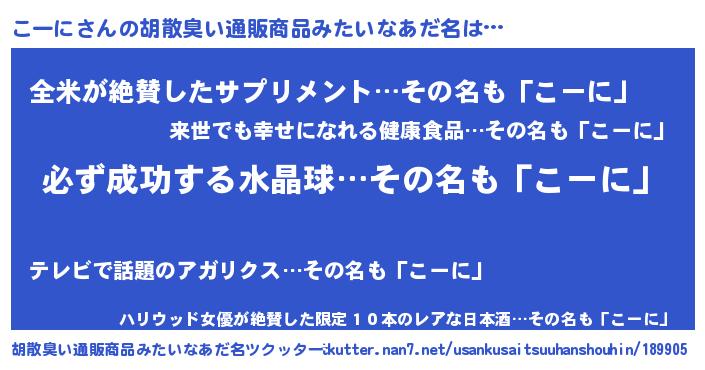 | ヘコむあだ名 | 『こーもー』『こーを』『こーに(笑)』 |