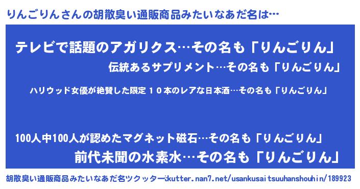 | 意味不明あだ名 | 『住所不定無職りんごりん(56歳)』 |