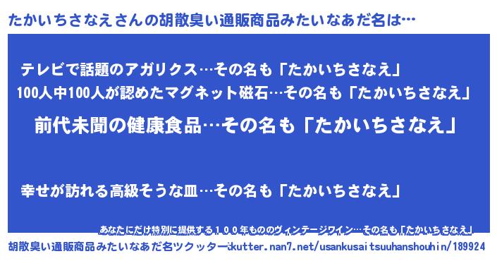 | 意味不明あだ名 | 『永久保存たかいちさなえ』 |