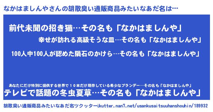 | 欧米人風あだ名 | 『アンジェラ・なかはましんや』 |