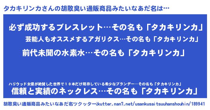 | 意味不明あだ名 | 『永久保存タカキリンカ』 |
