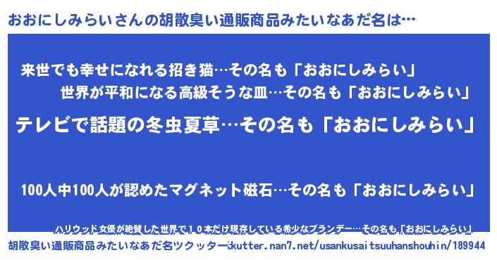 | ヘコむあだ名 | 『おおにしみらい(苦笑)』『つくし』 |