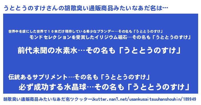 | 意味不明あだ名 | 『永久保存うととうのすけ』 |
