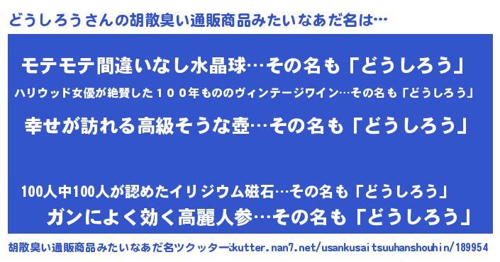 | 意味不明あだ名 | 『どうしろうフォーエバー』 |