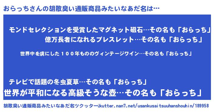 | 意味不明あだ名 | 『住所不定無職おらっち(1歳)』 |