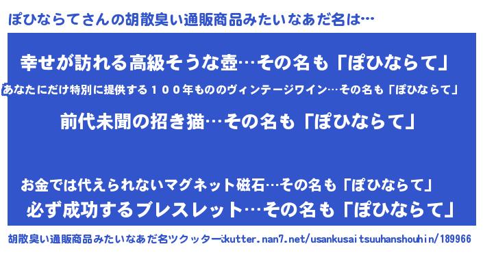 | ヘコむあだ名 | 『ぽひならて(笑)』『牛乳』『ぽひを』 |