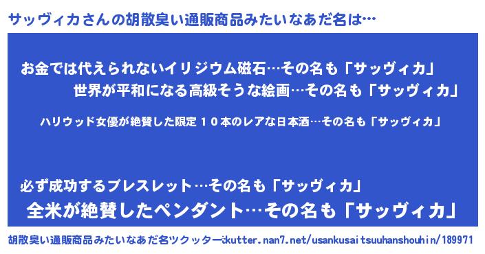 | 意味不明あだ名 | 『住所不定無職サッヴィカ(40歳)』 |