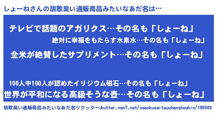 | 意味不明あだ名 | 『とにかく怪しいしょーね』 |