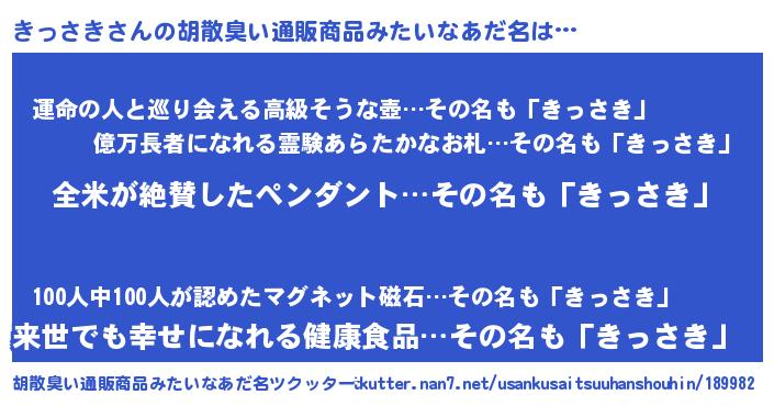 | 意味不明あだ名 | 『とにかく怪しいきっさき』 |