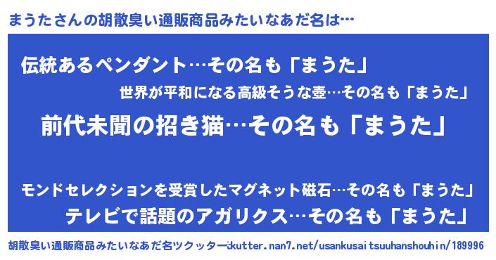 | 意味不明あだ名 | 『永久保存まうた』『自称まうた』 |