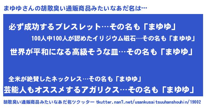 | 欧米人風あだ名 | 『まゆゆクリステル』『マイケルまゆゆ』 |