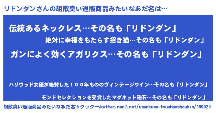 | 意味不明あだ名 | 『自称リドンダン』『永久保存リドンダン』 |