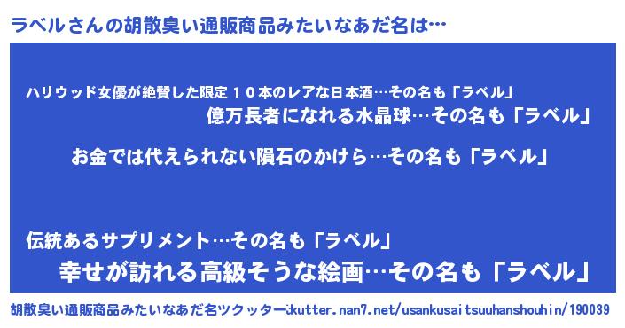 | ヒーロー風カッコイイあだ名 | 『慈愛の使者ラベル』『仮面ラベダー』 |