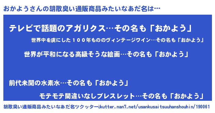 | 欧米人風あだ名 | 『アンジェラ・おかよう』 |