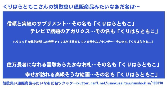 | 意味不明あだ名 | 『住所不定無職くりはらともこ(81歳)』 |