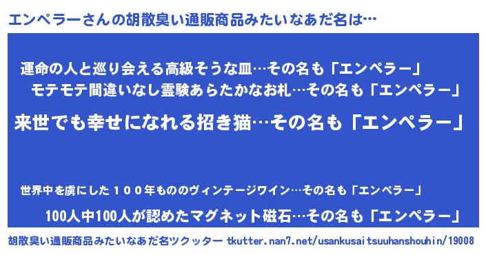 | 意味不明あだ名 | 『永久保存エンペラー』 |