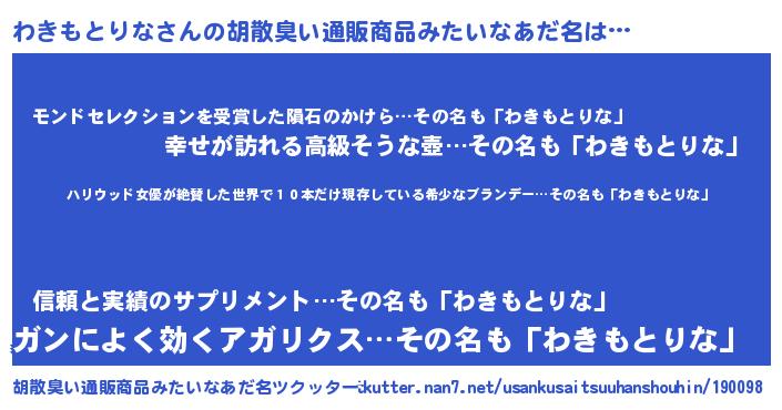 | 欧米人風あだ名 | 『ダレノガレわきもとりな』 |