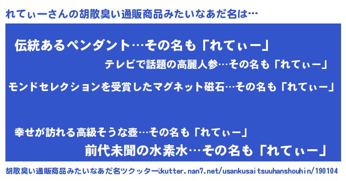 | ヒーロー風カッコイイあだ名 | 『天空の使者れてぃー』『幻影騎士レテ』 |