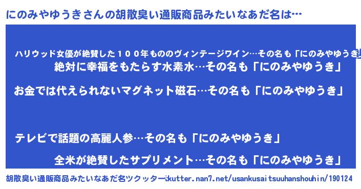 | 意味不明あだ名 | 『眠気覚ましガムにのみやゆうき味』 |
