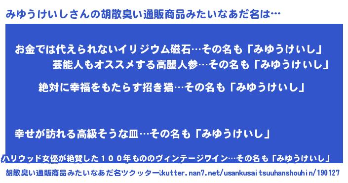 | 伝説のあだ名 | 『聞きしに勝る吟遊詩人みゆうけいし』 |