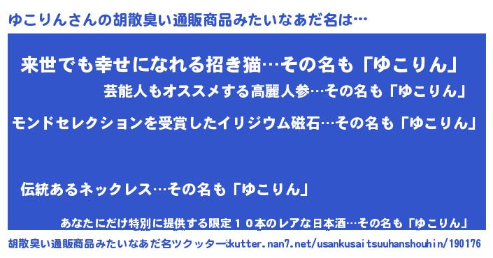 | ヒーロー風カッコイイあだ名 | 『慈愛の使者ゆこりん』『ネオユコリン』 |