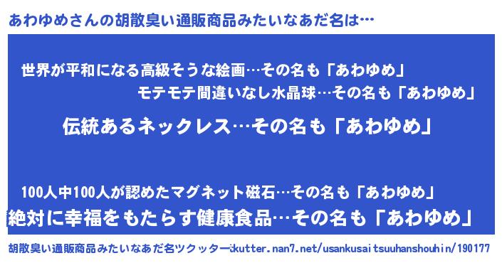 | 意味不明あだ名 | 『とにかく怪しいあわゆめ』 |
