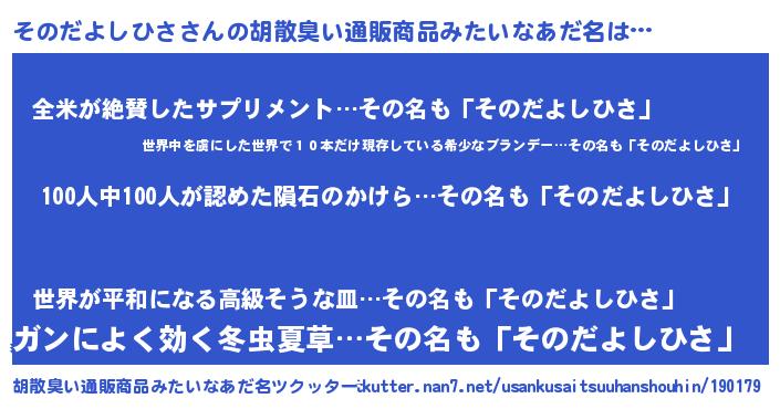 | ヘコむあだ名 | 『そのっちょ』『酢こんぶ』 |