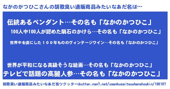 | 意味不明あだ名 | 『住所不定無職なかのかつひこ(5歳)』 |