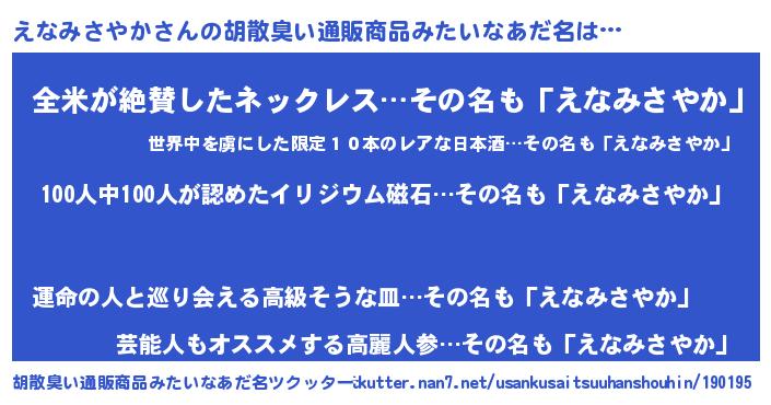 | ヘコむあだ名 | 『えな太郎』『酢こんぶ』『えなもー』 |