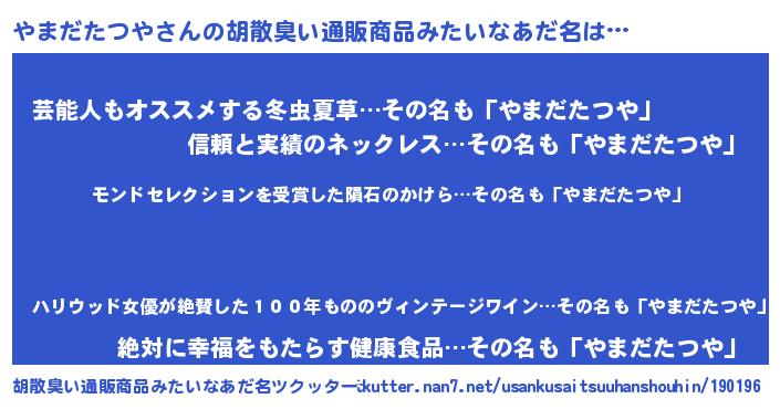 | ヘコむあだ名 | 『やまだたつや(震え声)』『やまっぺ』 |