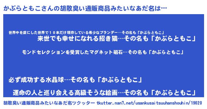 | ヒーロー風カッコイイあだ名 | 『天空の使者かぶらともこ』 |